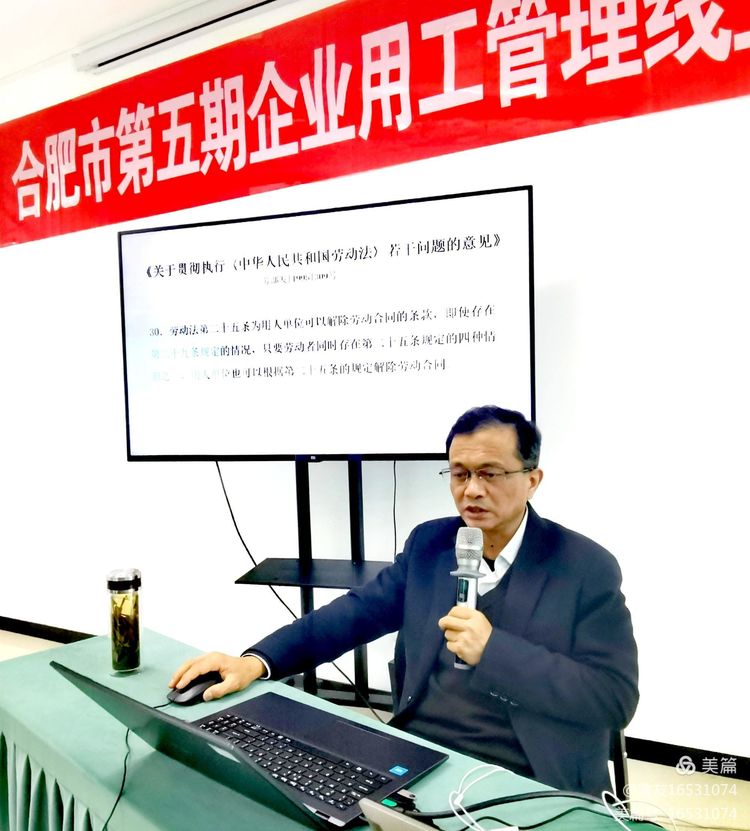 中国法学会会员、安徽劳动法学会理事单位、合肥市劳动人事争议仲裁院院长秦道友讲授了《劳动人事争议典型案例分析》。他运用劳动法规,结合工作实践,分析了合肥当前用工现状和劳动争议的形势,阐述了劳动关系解除的基本理念,重点讲述了劳动关系解除的风险防控,包括协商一致解除、员工单方解除、单位单方解除的三种形式。这种理论联系实际的授课,让学员收益匪浅。